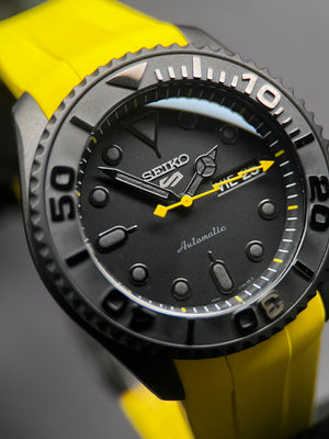 • SKX007/SRPD FKM: Yellow Rubber Strap in Black Clasp